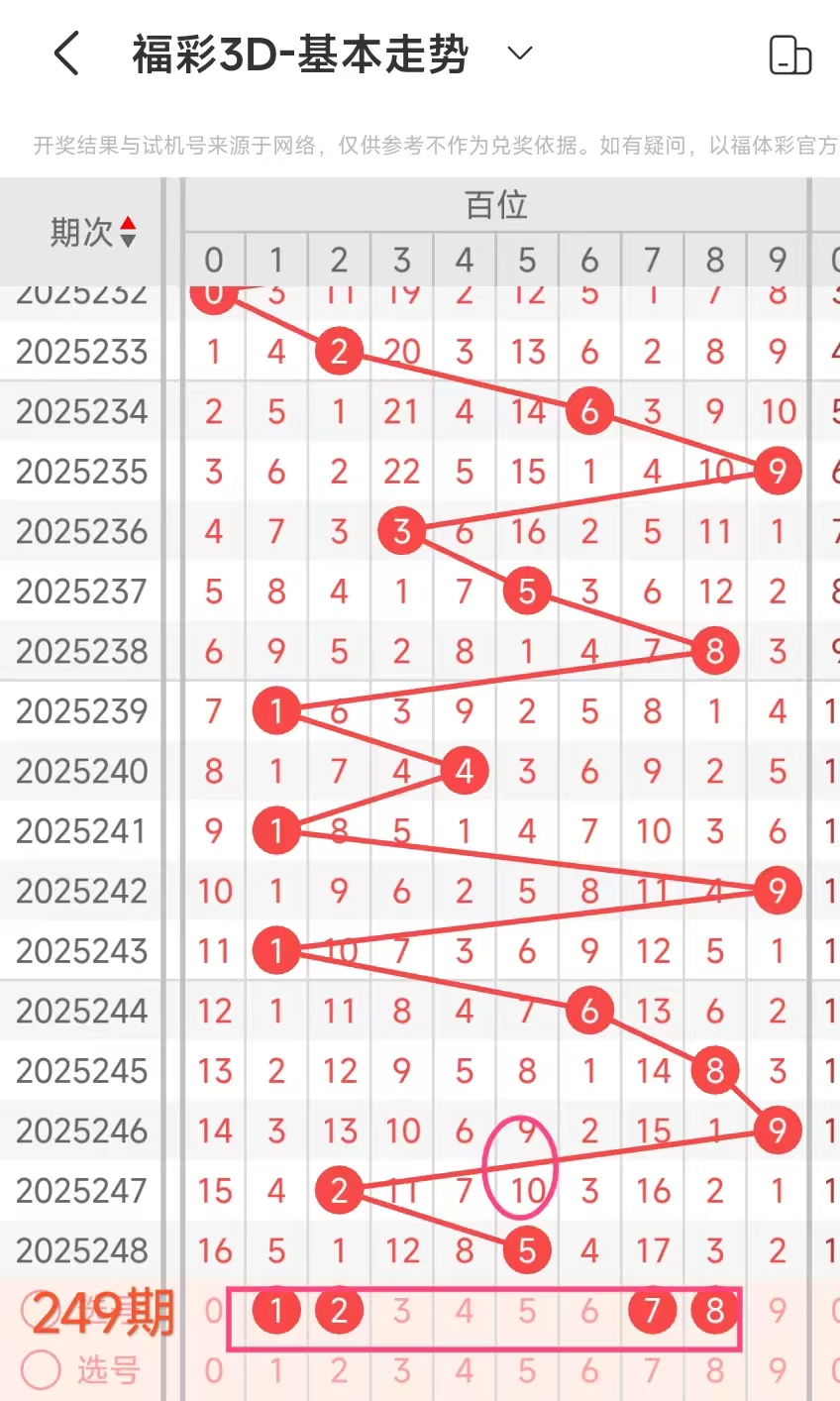 2、当十位开出2后下期开出:1998684959061,经统计0号出1次、1号出现2次、2号出现0次、3号出现0次、4号出现1次、5号出1次、6号出现2次、7号出现0次、8号出现2次、9号出现4次。观察发现1689号出现靠前优先选