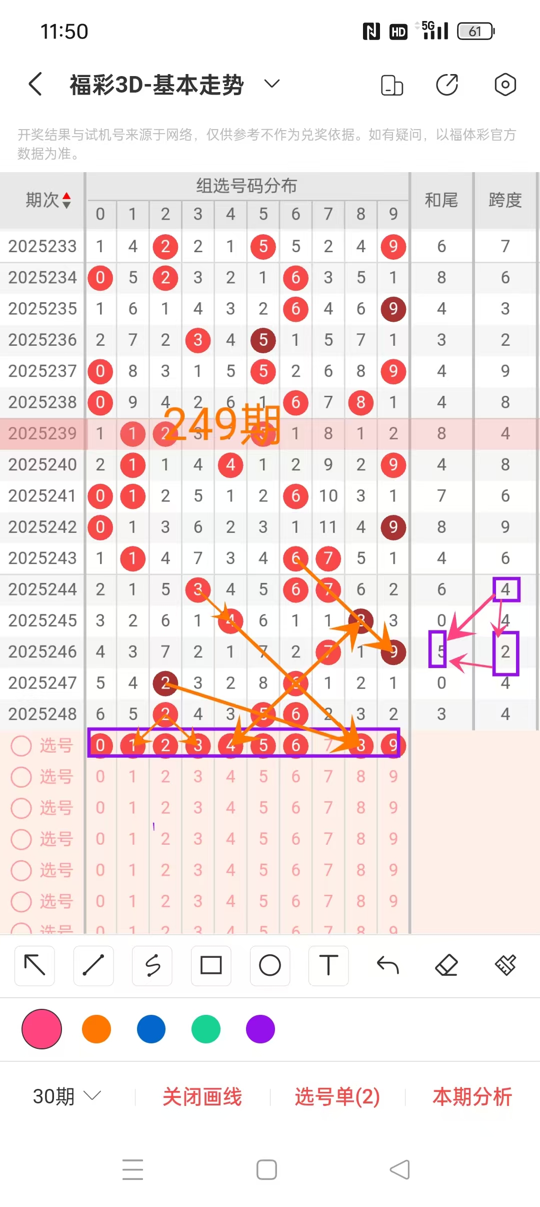 三、福彩3D第249期个位分析如下图: