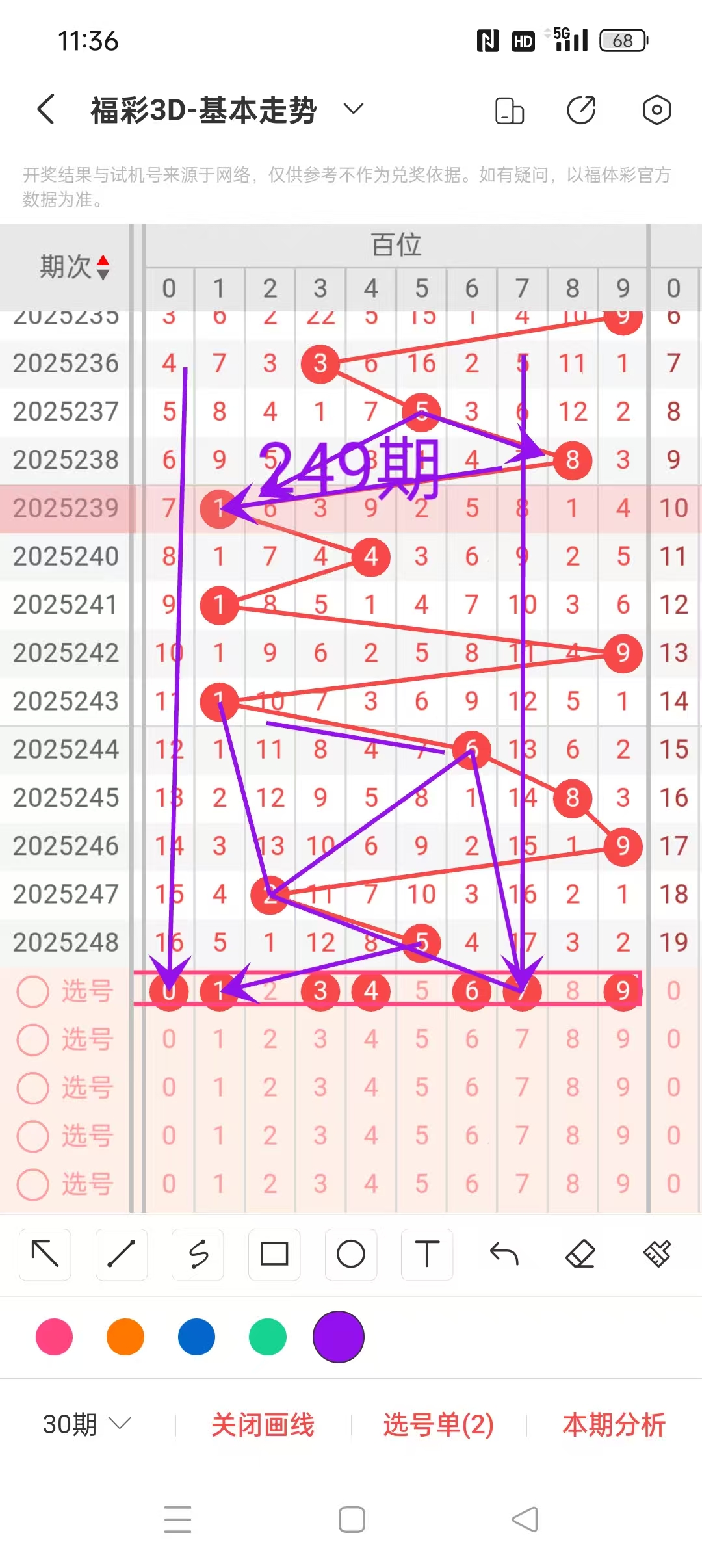 1、福彩3D第249期百位分析如下图: