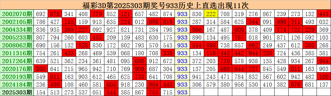 解密:首先,直选933开出之后,10期内开出豹子号0次,2003年-2025年在开出直选933之后,10期内组三累计出现27次,组三在未来第1-5期出现概率为80%,组三在未来5-10期出现的概率为90%。