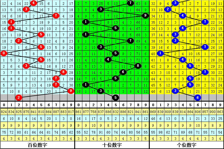 在历史同期组选奖号中,号码:7、8、9,走势最冷,一般不会同出,杀一码8;号码:0、5、6,表现最为活跃,本期防再落号,参考号码6。