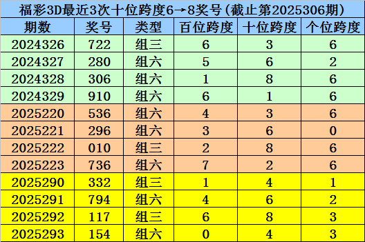 第2025220-第2025222期奖号:536、296、010,其下期奖号为:736,中位号码跨度为7;