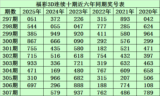陈青峰福彩3D第2025307期推荐: