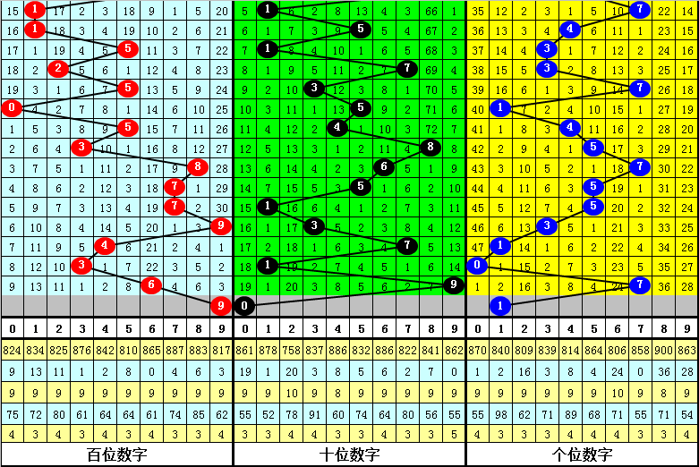 百位上期开出号码6,上升了3个点,本期看好该位继续上升,参考号码9。