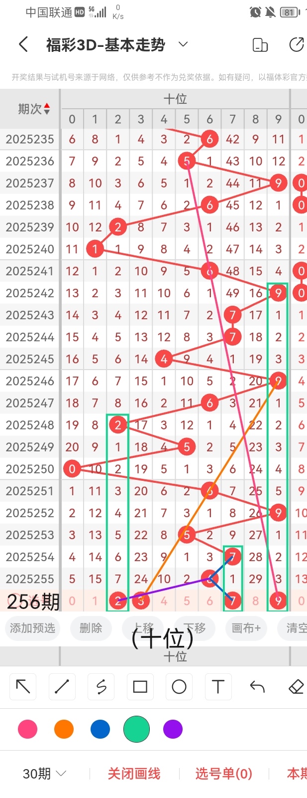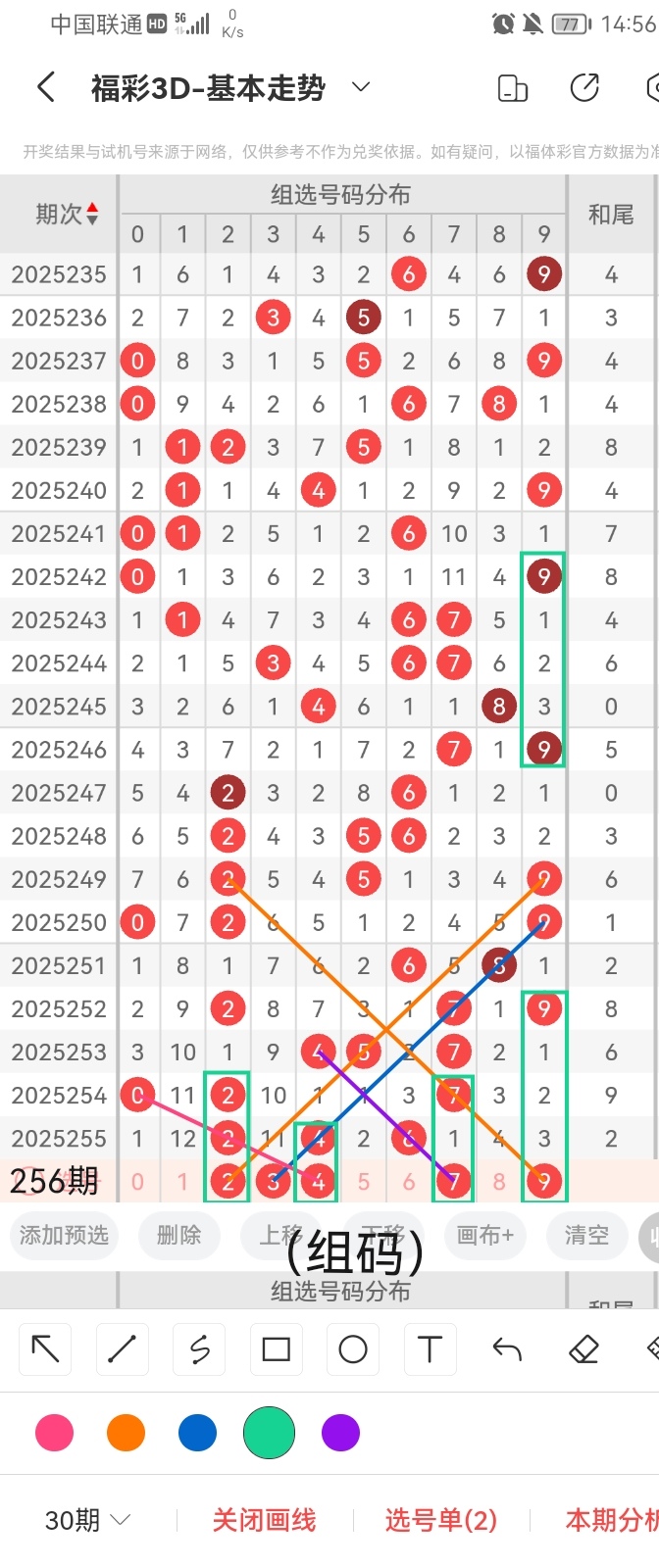 通过以上对上期的简单回顾,下面进入2025256期(下面简称本期)的选号分析: