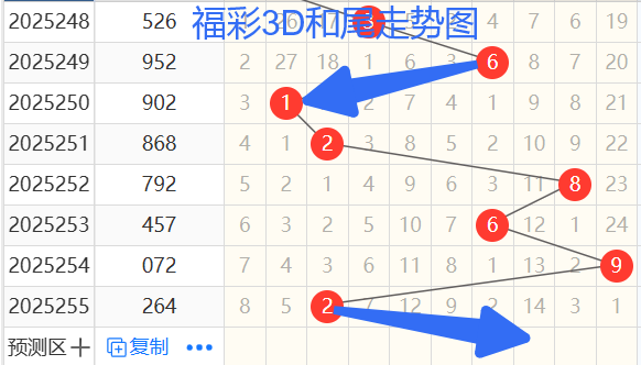 们依次是28692和尾,按照012路排序是22002路和尾,后面两期不是同路,今天就是1路或0路的和尾,为什么这么讲呢,这个是个大概率的问题,也是根据长期的研究规律定的,准确率相当高,我定了1 0路的和尾,也就是1470369和尾,那么我们再来看和值,按照和值除3余数的话,可以分为余0 1 2路. 那么我们来看251期期和值20余2,252期和值18余0,253期和值16余1,254期和值9余0,255期和值12余0,那么本期和值看余2余1,根据上面的和尾那么就只有10 13 16 19 11 14 17和值