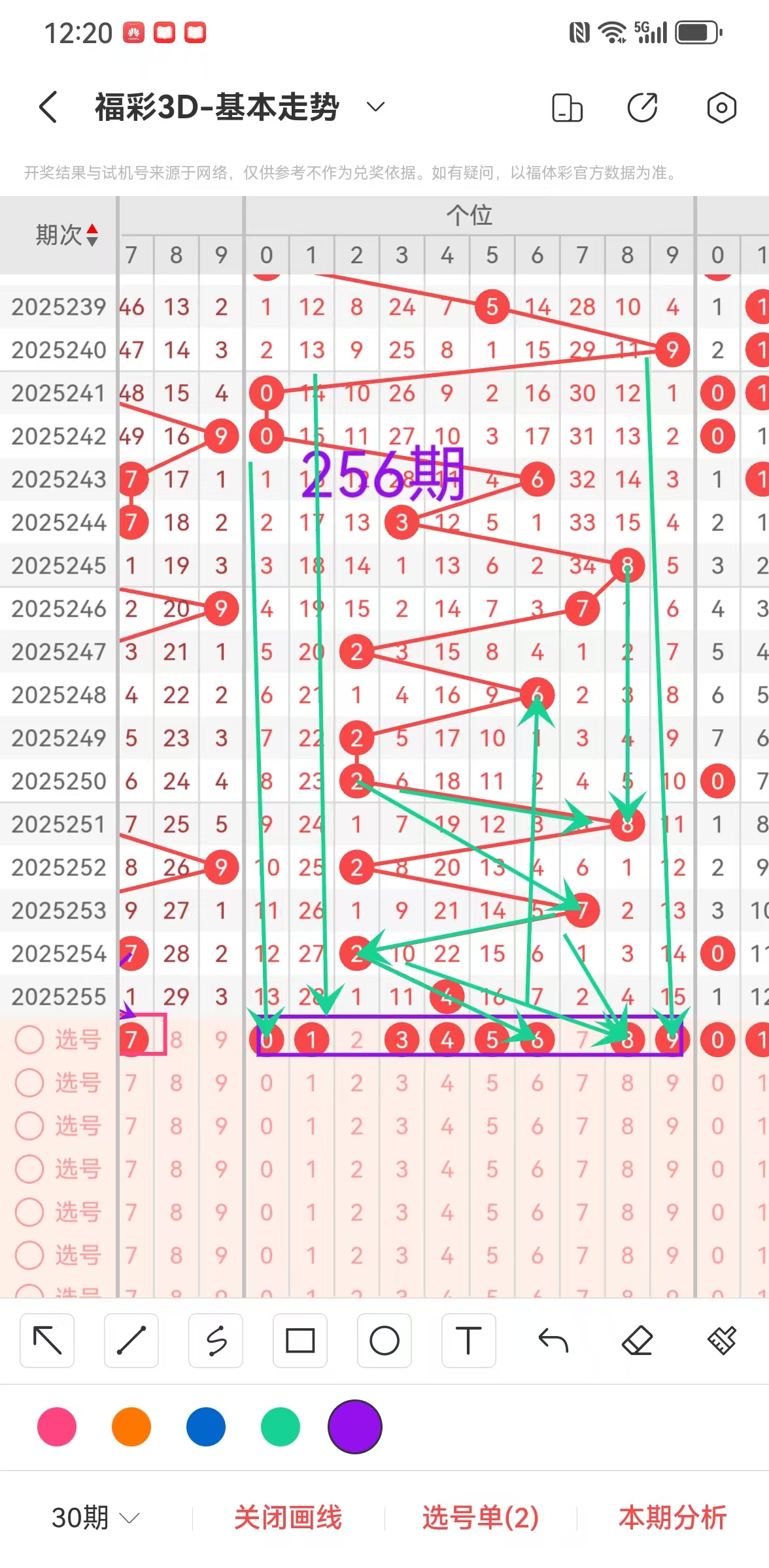 ②个位大小比:近10期大小比为4:6,大号依次开7687,大号中奇偶比为2:2,小号依次开出222224,小号中奇偶比为0:6,通过对比分析得出(01324)有可能开其一