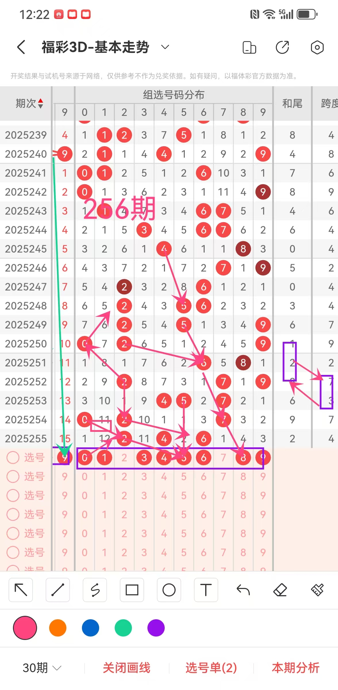 四、福彩3D第256期组选分布,和尾,跨度分析,(五行八卦数字推演法)如下图: