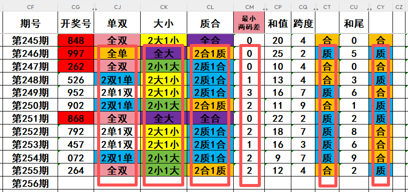 5,跨度10天当中,质数(12357)开出了6次,合数(04689)开出了4次,近期需重点关注开奖号合数跨度的回补!