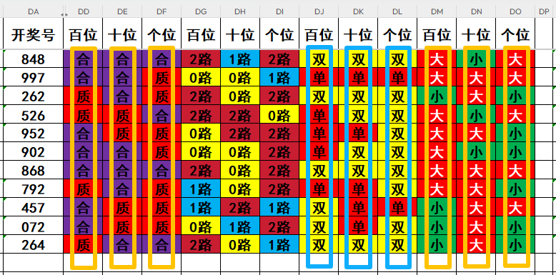 3,目前开奖号个位号码球11天当中,质数(12357)开出了7次,合数(04689)开出了4次,本期重点关注开奖号个位号码球合数的回补!