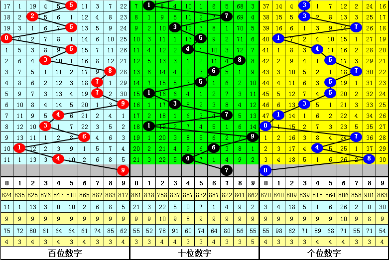 跨度分析:跨度最近10期012路比为5:1:4,1路跨度开出较少,前3期跨度分别遗漏0期、7期和11期,本期看好温冷跨度解冻,关注跨度9。