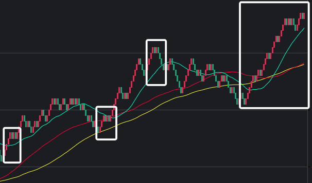可以看到一些规律,在粉框中,如果一致,那么接下来这些跨度也会出。