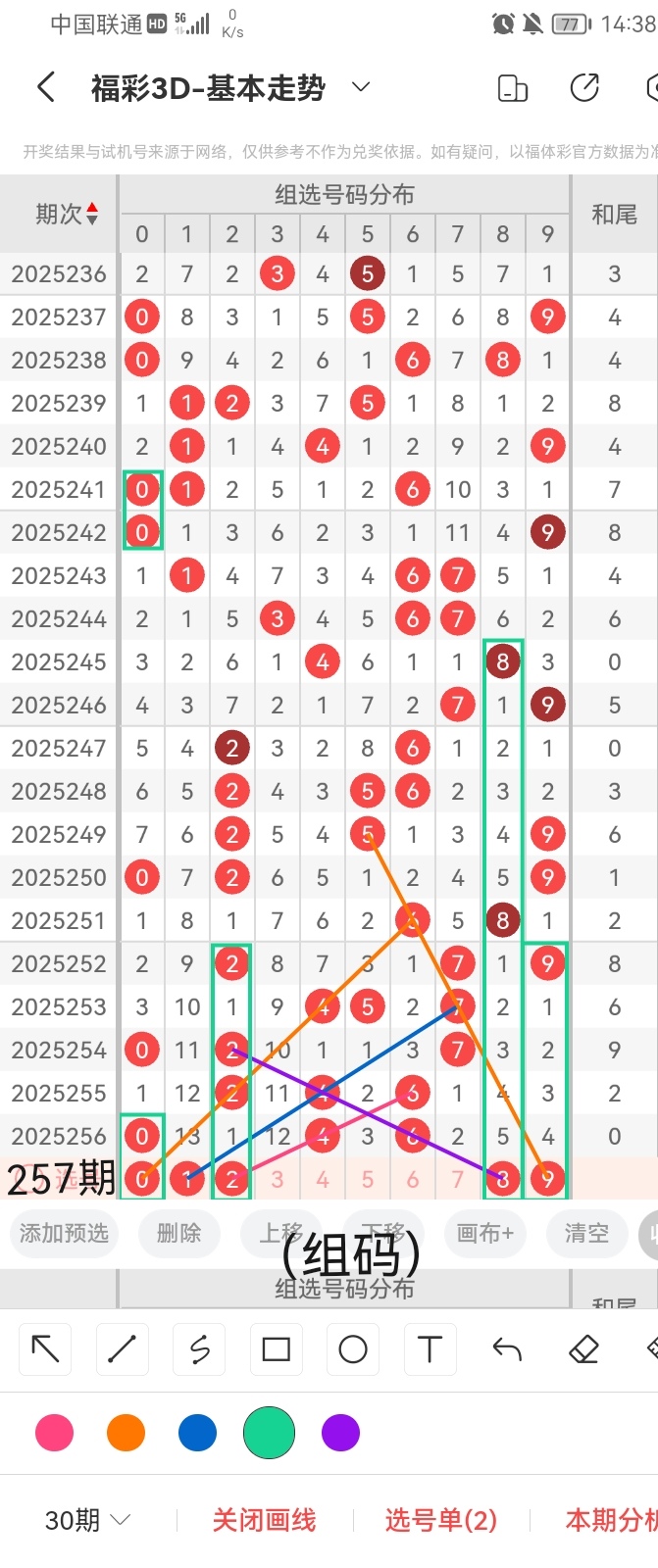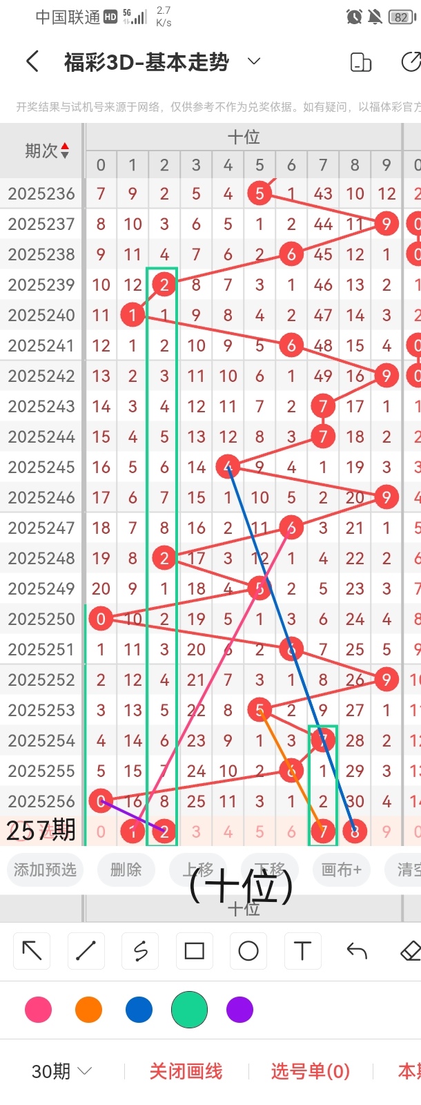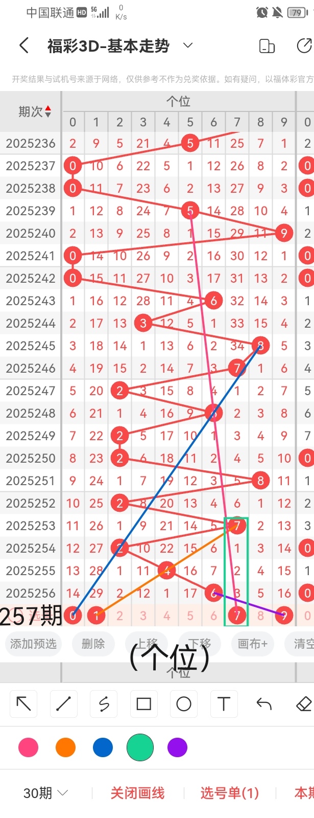 通过以上对上期的简单回顾,下面进入2025257期(下面简称本期)的选号分析: