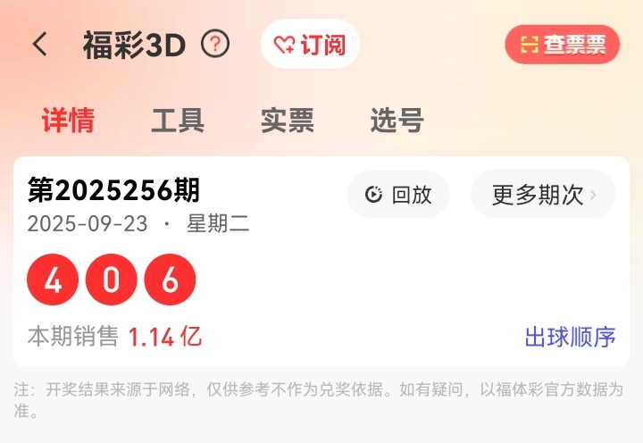福彩3D上期开奖号码如下图: