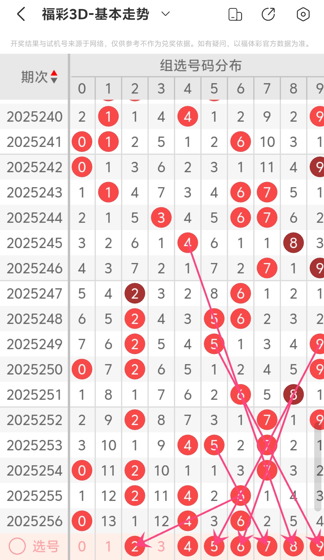 通过以上简单分析,我们看下25257期号码的定位分析: