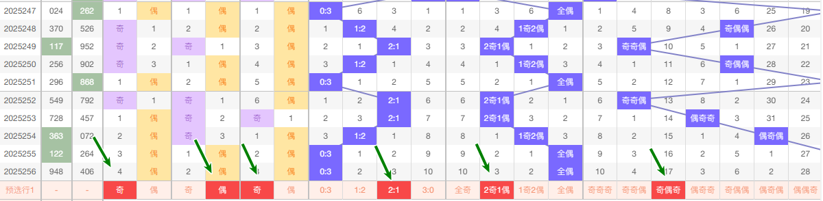 (二)、奇偶分析 奇数 13579 偶数 02468 在这5期 数据中 奇数出现 5次 偶数出现 10次 从昨天出号来看偶数占优, 本期还是看好奇数有号 看好 奇奇偶 偶奇奇