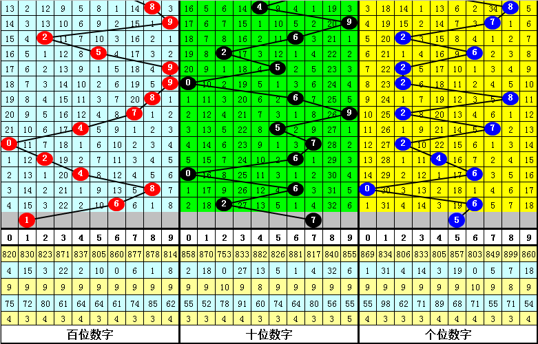 和尾分析:最近10周周五和尾为:6、4、4、7、1、8、2、4、0、8,波动了8个点位,和尾奇偶比为2:8,奇数和尾走势较冷,和尾大小比为4:6,基本相当,本期参考和尾3。