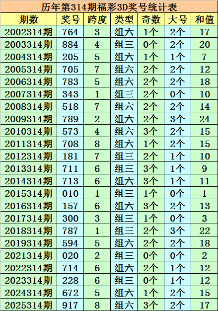 开奖回顾:福彩3D第2025314期奖号:917。