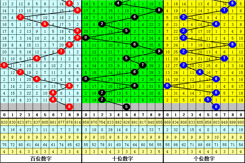 第二位冷码判断:上期奖号为2,遗漏值为0期,目前该位最冷号码为8,遗漏值为33期,本期注意冷码8出现。