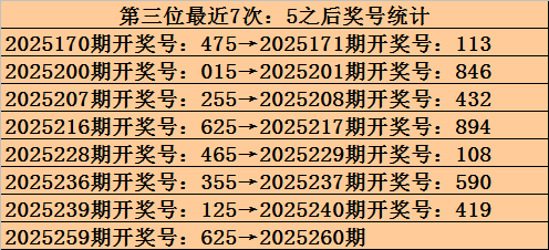 第三位冷码判断:上期开出奖号5,遗漏值为19期,目前该位最冷号码为1,遗漏值为32期,本期预计1解冻。