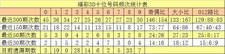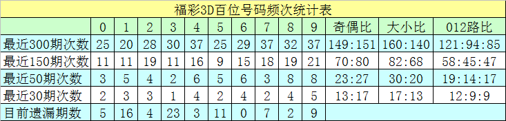 个位分析:近50期该位表现活跃的号码有:0出现12期,6出现10期,2出现6期;表现较冷的号码有:1、3开出2期,4、7、8开出3期。该位号码奇偶比为16:34,大小比为25:25。本期该位杀两码0、7,防号码4、5、6出现,精选一码4。