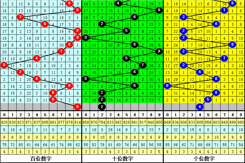 百位分析:最近50期表现较热的号码有:8、9出现8次,4、6出现6次;表现较冷的号码有:3出现2次,0、7出现3次。出号奇偶比为23:27,012路比为19:14:17。本期该位绝杀两码3、8,参考号码5、6、9,精选一码9。