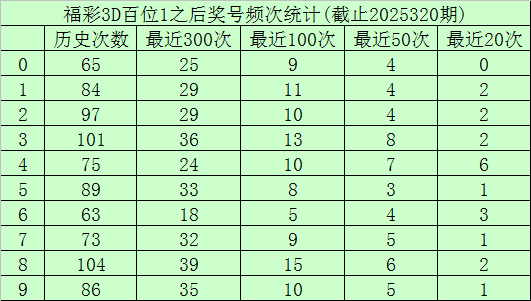 百位杀号:上期百位开出号码1,历史上百位号码1已开出838次了,最近100次百位号码1出现之后,其下期各号码频次分别为:号码8出现15次,3出现13次,1出现11次,2、4、9出现10次,0、7出现9次,5出现8次,6出现5次。