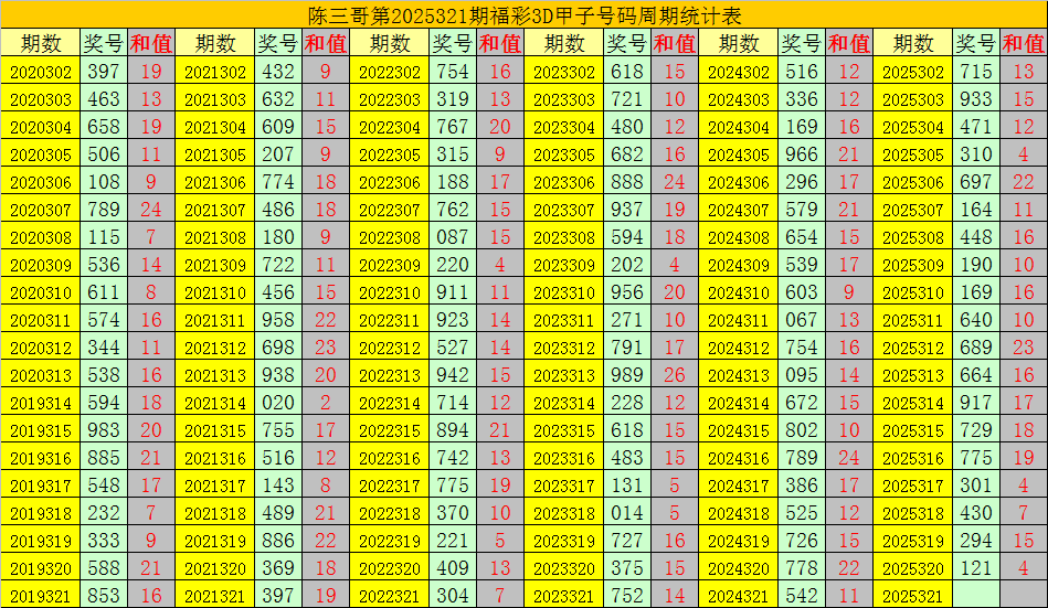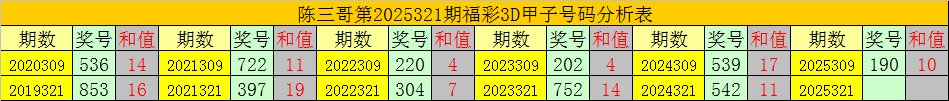 陈三哥3D第2025321期甲子号分析: