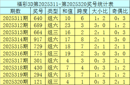 上期回顾:福利彩票3D第2025320期奖号为121。