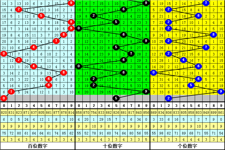 跨度分析:跨度最近10期012路比为2:5:3,1路跨度相对较热,前3期跨度分别遗漏2期、0期和2期,本期看好温冷跨度解冻,关注跨度5。
