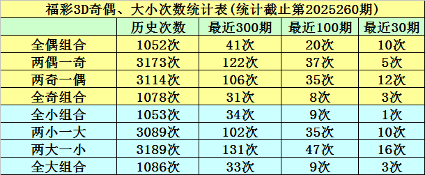 在前10期开奖中,两小一大组合出现3次,两大一小组合出现6次,全大组合出现1次,全小组合出现0次,本期预计开出两小一大组合。