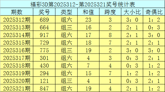 类型判断:上期奖号为847。号码4近10期开出4次,走势较冷,号码7出现5次,大热,号码8出现2次,走势较冷,上期总体遗漏走温,本期注意温码奖号。