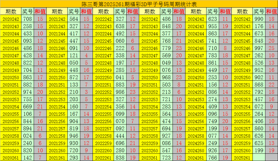 陈三哥3D第2025261期甲子号分析: