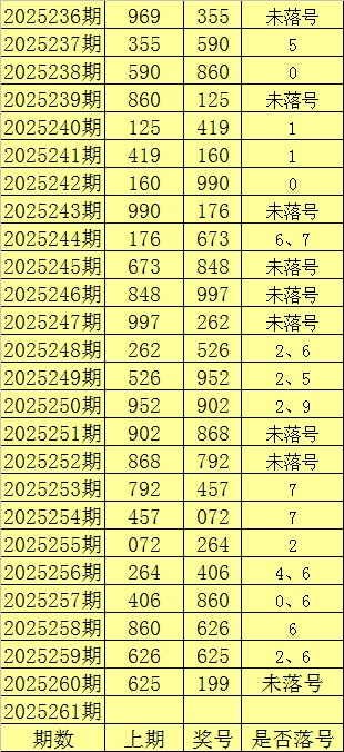 福彩3D第2025261期推荐