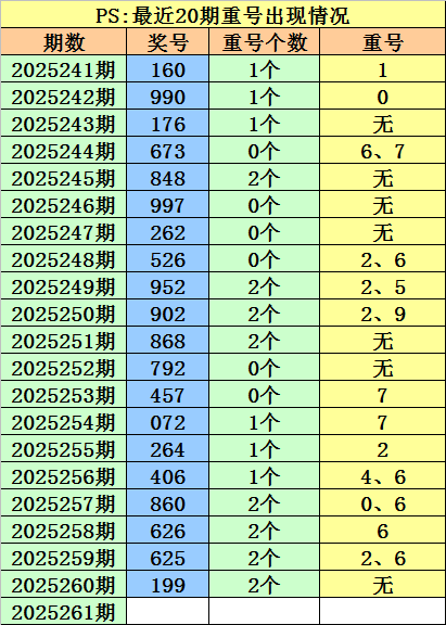 开奖回顾:福彩3D第2025260期开出奖号:199。