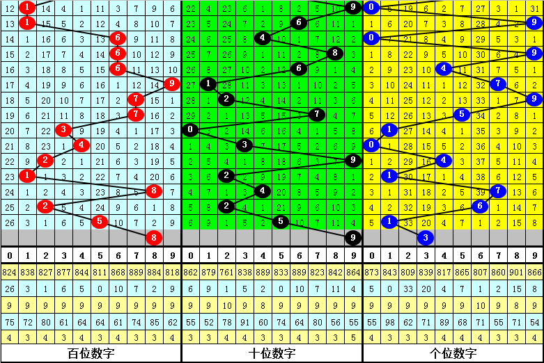 跨度分析:在第324期同期历史奖号中,号码跨度大小比为14:8,012路比为9:4:9,奇偶比为10:12,跨度开出频次分别为:跨度6出现5次,跨度3、8出现4次,跨度5出现3次,跨度2、7出现2次,跨度1、4出现1次,跨度0、9出现0次,本期关注大跨度出现,一码跨度参考6。