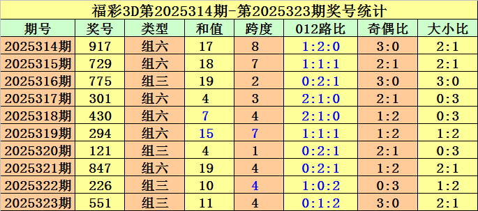 奇偶分析:上期奇偶比为3:0,奇偶形态为奇奇奇,奇数大热,本期看好奇数继续热出,奇偶比参考2:1,奇偶形态看好偶奇奇。