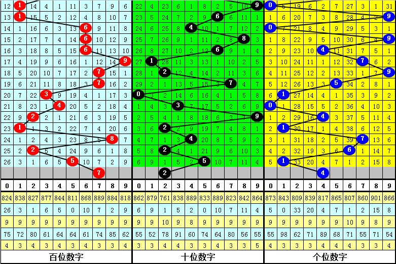 百位上期开出号码5,上升了3个点,本期看好该位继续上升,参考号码7。