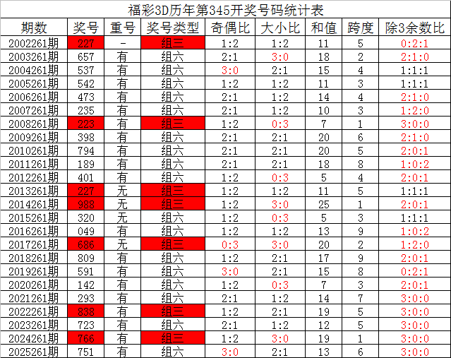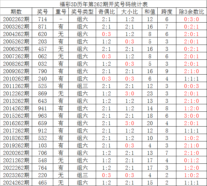 其中,组三号码开出2次,组六号码出现21次,上期奖号为组六号码,本期预计继续开出组六号码。