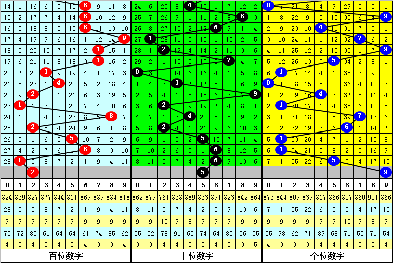 另外,两码合出现期数从高到低分别为:9开出14期,5开出8期,6开出7期,0、4开出6期,3开出5期,2、7开出4期,1、8开出2期,本期两码合参考:1、4、7。