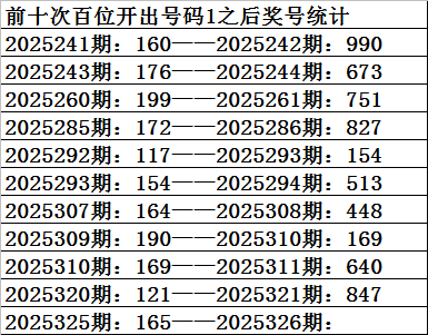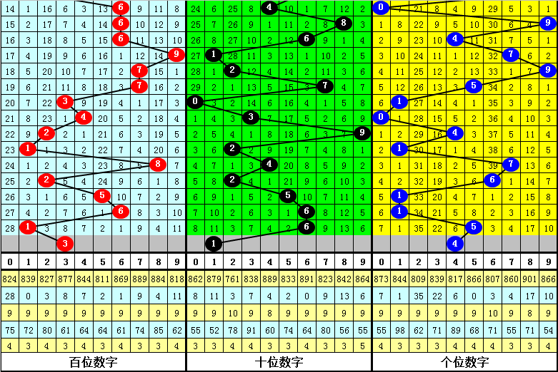 二、百位分析:上期开出号码1,前10次号码1出现之后下期分别开出号码:9678154168,其中号码大小比为7:3,小 号表现较冷;奇偶比为5:5,相等;012路比为3:4:3,0路号码走温。本期参考号码:3。