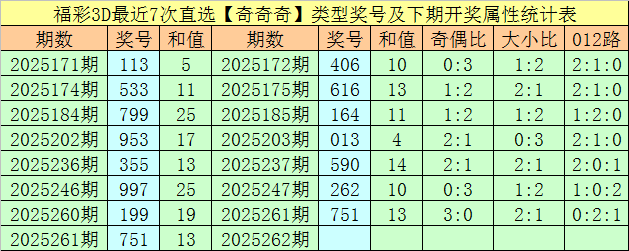 开奖回顾:福彩3D第2025261期开奖号码为751,奖号直选类型为:奇奇奇、大大小和121路。