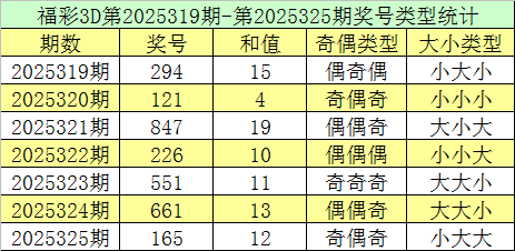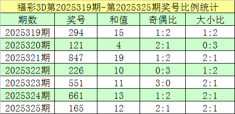 福彩3D第2025325期回顾:奖号为165,奖号奇偶比为2:1,大小比为2:1,和值为12,类型为组六。