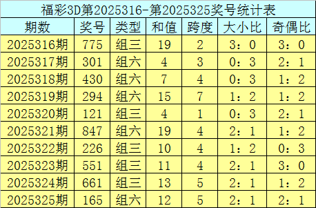 上期回顾:福利彩票3D第2025325期奖号为165。