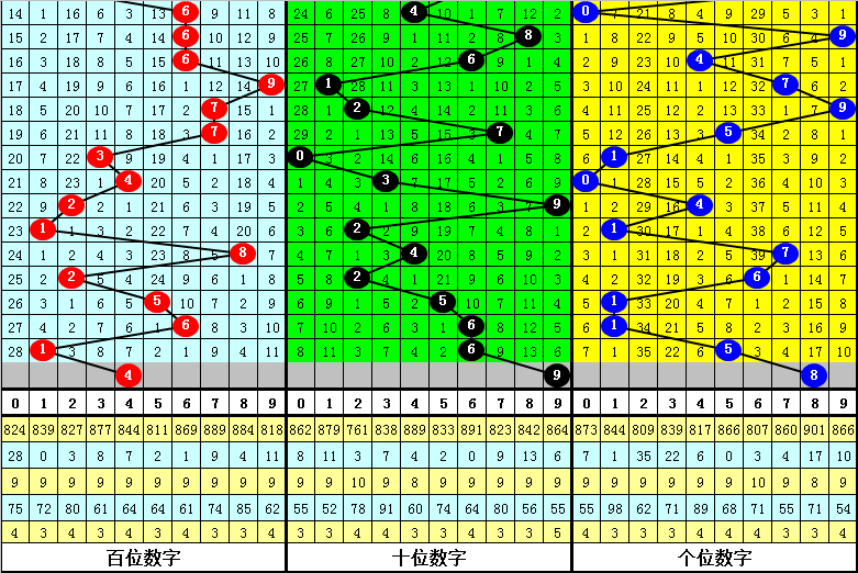 百位上期开出号码1,下降了5个点,本期预计反向上升,参考号码4。