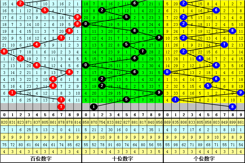 和尾分析:第262期历史同期开奖中,奖号和尾出现频次分别为:和尾6出现4次,和尾2、3、4、5、8出现3次,和尾0、7出现2次,和尾1、9出现0次,其中和尾奇偶比为8:15,大小比为12:11,012路比为9:5:9,本期看好开出偶和尾,精选和尾6。