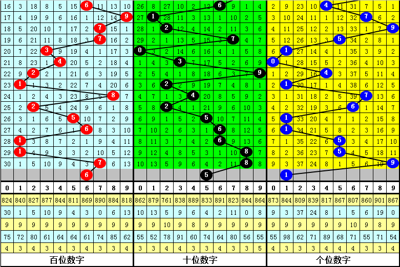 百位号码:第25323期-25327期奖号为:5-6-1-1-7,振幅为6点,分布较分散,本期看好百位走低,注意号码6。