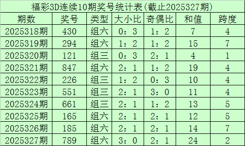 开奖回顾:福利彩票3D第25327期奖号开出789。奖号类型为组六,奇偶形态为奇偶奇,大小形态为大大大。