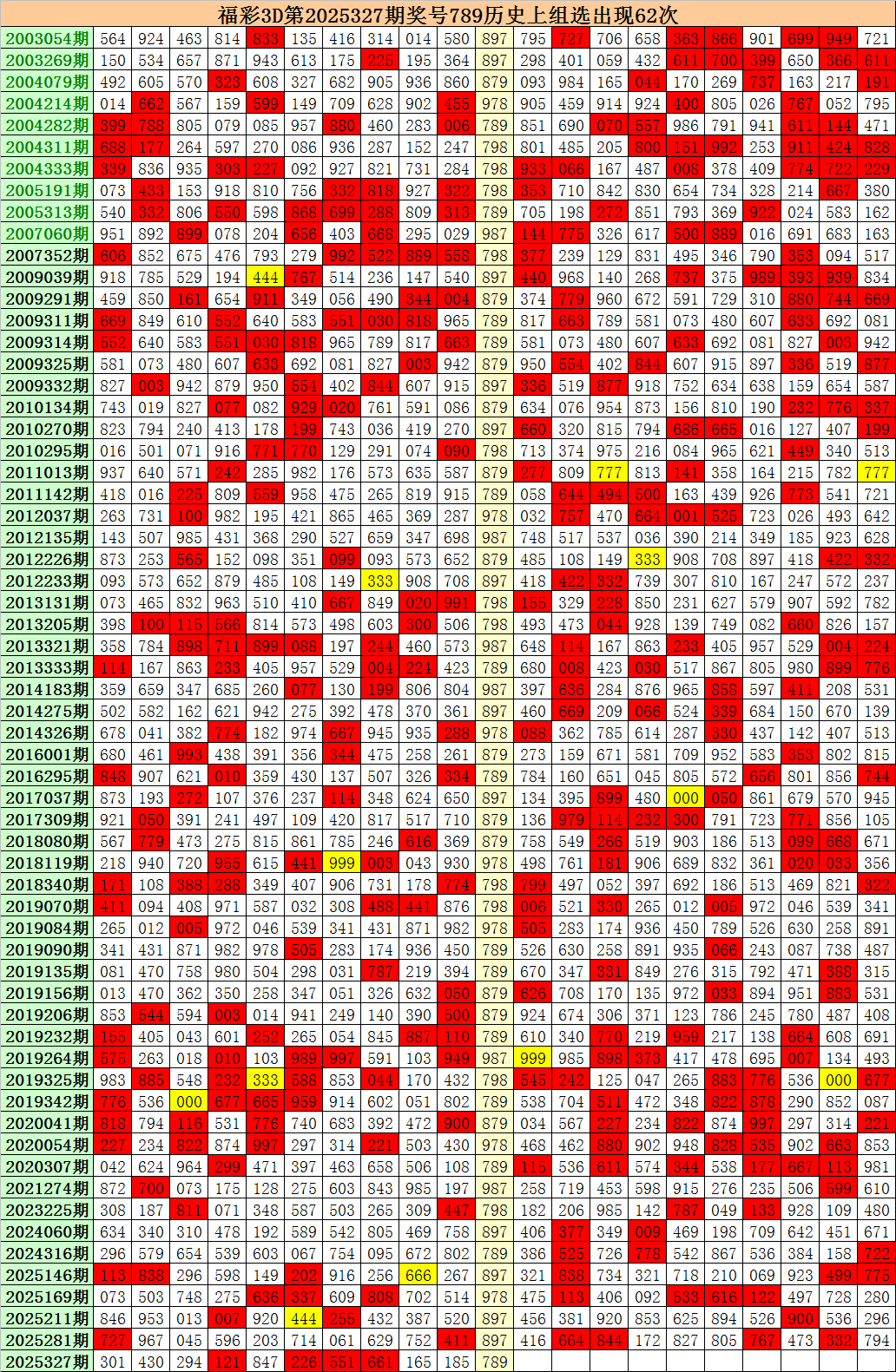 解密:首先,直选789开出之后,10期内开出豹子号0次,2003年-2025年在开出直选789之后,10期内组三累计出现38次,组三在未来第1-5期出现概率为85%,组三在未来5-10期出现的概率为100%。