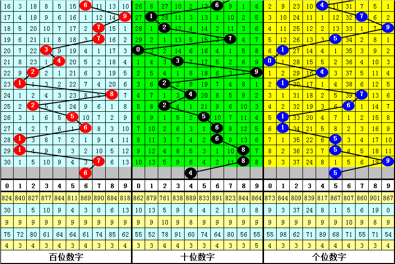 和值:上期和值为24,上升10点,本期预计和值转向走小,出现在15周围。